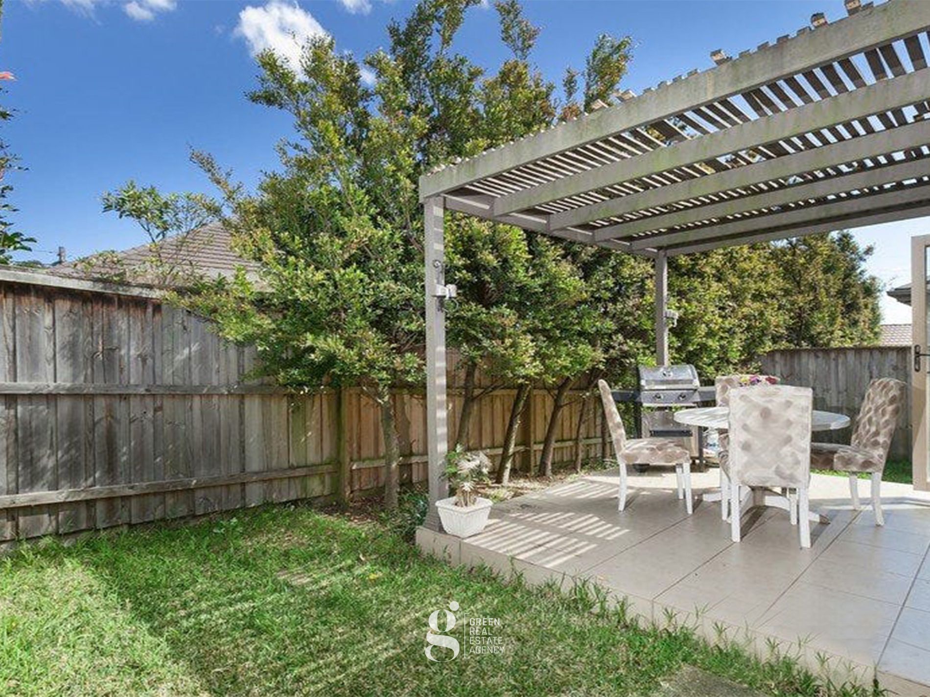 - Private backyard and covered entertaining patio